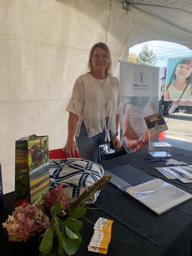 Nathalie Maheux, à l'origine du programme de don planifié de Moisson Beauce, était sur place pour présenter son initiative lors de la journée portes ouvertes de l'organisme.