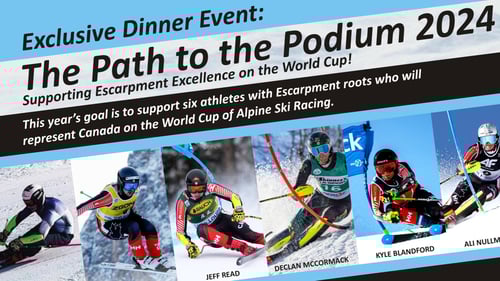 The 4th annual Path To the Podium gala Fundraiser was a resounding success on Saturday November 30th at the Georgian Peaks Club. This is a volunteer led initiative to rally the local community in support of 6 ski racers with Escarpment roots who are racing at the World Cup level this year.